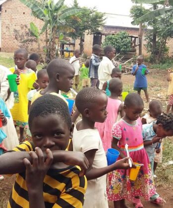 Volunteers helfen auch beim Kochen und beim Austeilen des Essens. Danach werden die Zähne der Kinder geputzt – ebenfalls eine neue „Errungenschaft“. Denn bis dato wurde das von den meisten Kindern nicht praktiziert. Wir haben viele „Rituale“ eingeführt, um den Kindern Regelmäßigkeit und Sicherheit zu geben. Vor allem geht es aber um das „Kind-Sein“, um die aktive und kreative Beschäftigung mit den Kindern. Die meisten Familien in der Region sind sehr arm, leben von der Hand in den Mund und haben keine Zeit für „Luxus-Dinge“, wie „Spielen mit den Kindern“. Dafür sind wir und unsere Freiwilligen da. Wir möchten intelligente, kreative, selbstbewusste junge Menschen in Uganda sehen. Wir fördern diese Entwicklung mit unseren Programmen. Denn in den Kindern liegt die Zukunft.