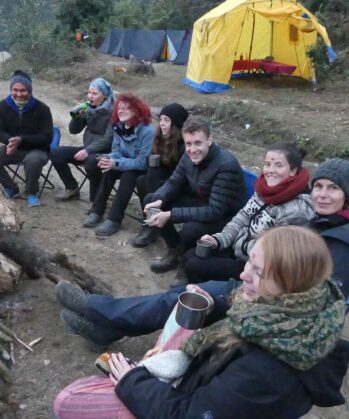 • Silvesternacht in der Natur mit Lagerfeuer und Blick auf Himalaya