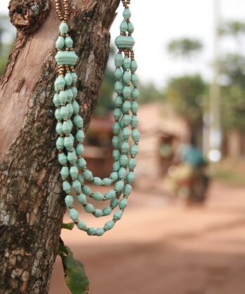 Handgefertigte Schmuckstücke aus unserem eigenen Frauen-Empowerment-Projekt aus Uganda, das wir seit 2014 betreiben und fördern. 10 Frauen arbeiten täglich an den Unikaten. Damit sie ihre Kinder gut betreut wissen, haben wir zudem einen Community-Kindergarten gegründet, in dem jeden Tag ca. 50 Kinder von unserer Sozialarbeiterin und Volunteers kostenlos betreut und versorgt werden.