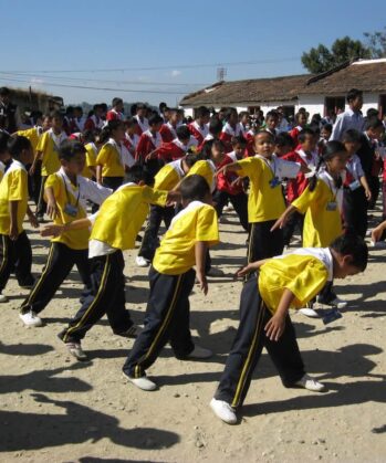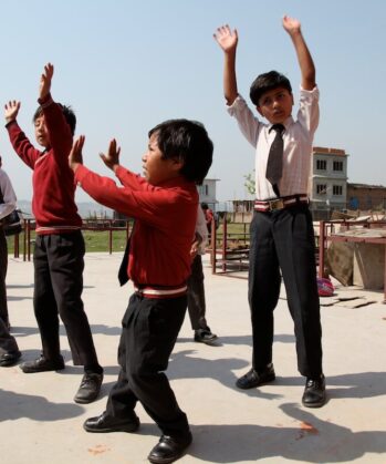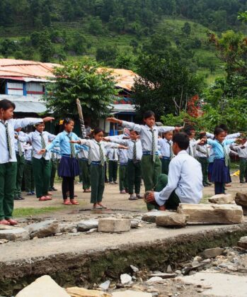 Der Schulunterricht startet in Nepal um etwa 9:30 Uhr. Der Tag beginnt aber schon sehr früh (um 6 Uhr) – und zwar mit Morgengymnastik. Volontäre können, wenn sie Lust haben, auch ihr eigenes Gymnastikprogramm für die Kinder zusammenstellen. Danach helfen sie den Kindern beim Waschen und Anziehen und in der Küche beim Frühstück machen (Dal Bhat = Reis mit Linsen, das Nationalgericht. Gibt es für die meisten Nepalesen 3x täglich).