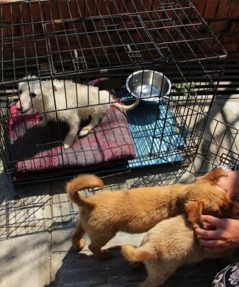 - Durch Streicheln Kontakt zu den Hunden und Welpen aufbauen