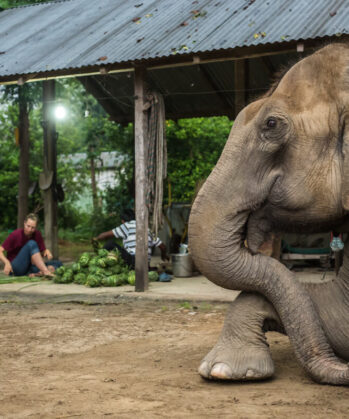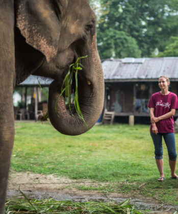 Engagiere dich während der Elefanten-Experience im ersten kettenfreien Elefantencamp Südostasiens: hilf bei der Futterzubereitung, beim Ausmisten der Gehege, leg Hand an bei der Elefantenwäsche im Fluss uvm.